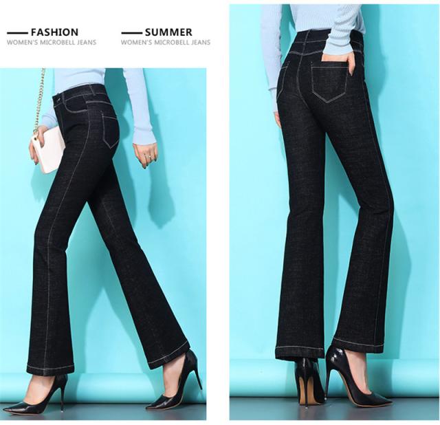 デニムパンツ レディース ストレッチ フレアパンツ ハイウエスト ジーンズ カットオフ 九分丈 ストレッチ オフィス 普段着 通