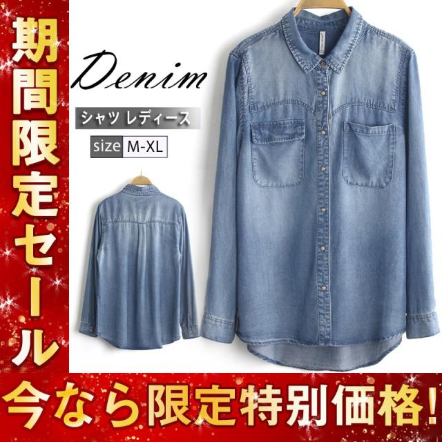 高品質加工 コーデ チュニック ワンピース デニム レディース シャツ 大人 上品 大きいサイズ ゆったり 羽織り 長袖 ヴィンテージ加工 ウォッシュ トップス 上着 アメカジ マニッシュ おしゃれ カジュアルシャツ