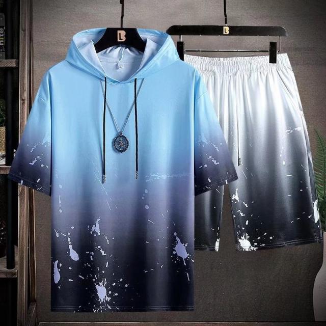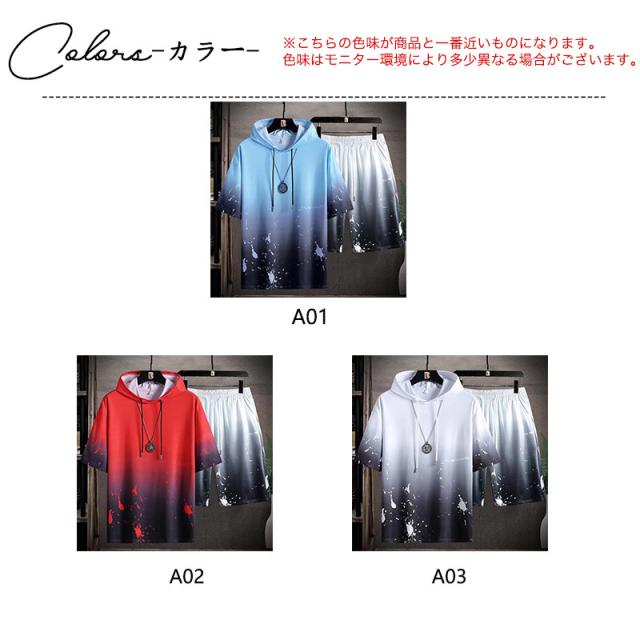 ジャージ メンズ 上下セット セットアップ 半袖パーカー グラデーション 夏 ショートパンツ 半袖パーカー 接触冷感 運動着 部屋
