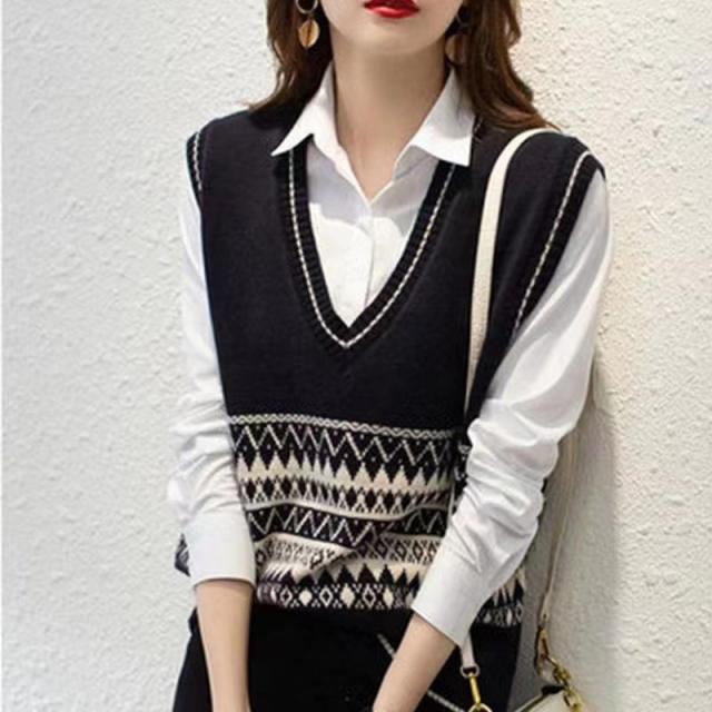 送料無料 ニットベスト レディース ニットタンクトップ チョッキ トップス Vネック ノースリーブ ゆったり プルオーバー ベスト