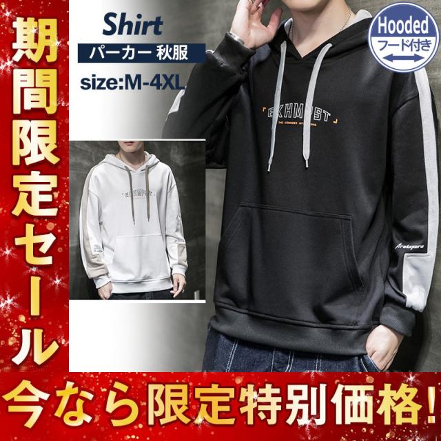 パーカー メンズ フード付き 長袖 tシャツ 丸襟 プルオーバーパーカー 英語プリント ゆったり シンプル カジュアル おしゃれ