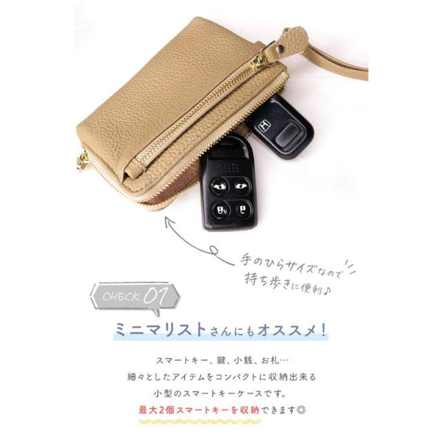 キーケース スマートキー対応 2個収納 レディース おしゃれ 小銭入れ スマートキーケース コインケース カード収納 ミニ財布 誕