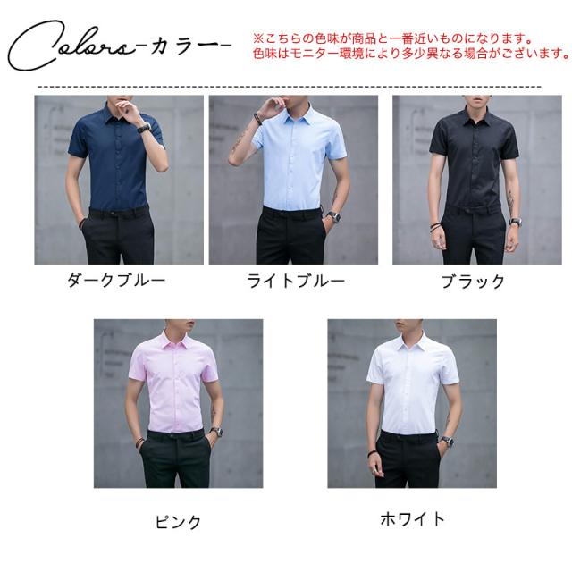 ワイシャツ メンズ 半袖 シャツ 細身 ビジネス フォーマル 開襟シャツ OL 通勤 紳士服 夏 クールビズ 通学 形態安定 スリ