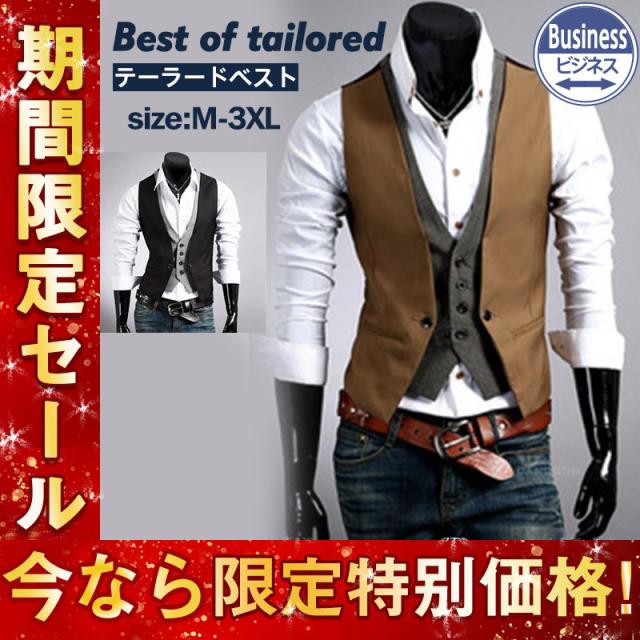 ベスト メンズ テーラードベスト ジレベスト スーツベスト チョッキ スリム 紳士服 前開き トップス Vネック スタイリッシュ