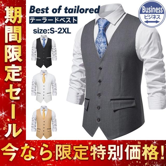 ベスト メンズ テーラードベスト ジレベスト スーツベスト チョッキ スリム 紳士服 前開き トップス Vネック フォーマル 発表