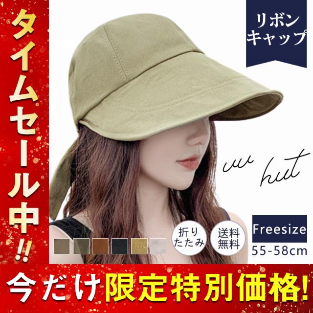 帽子 レディース リボンキャップ UVカット ちょう結び 大きなつば スポーティー フェミニン 可愛い キャップ 春 夏 折り畳み