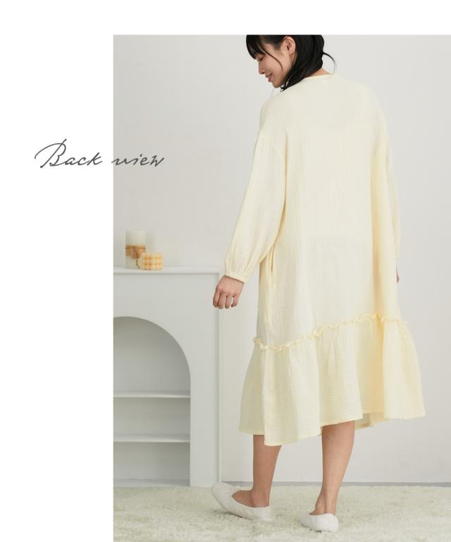マタニティ パジャマ ルームウェア ママ ウェア 授乳服 綿100% ダブルガーゼ 長袖 ティアード ワンピース 産前 産後 出産準備 3L ニッセン nissen