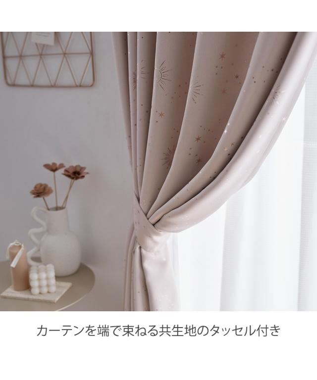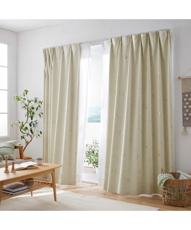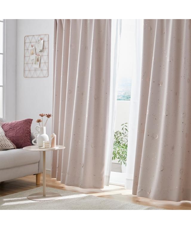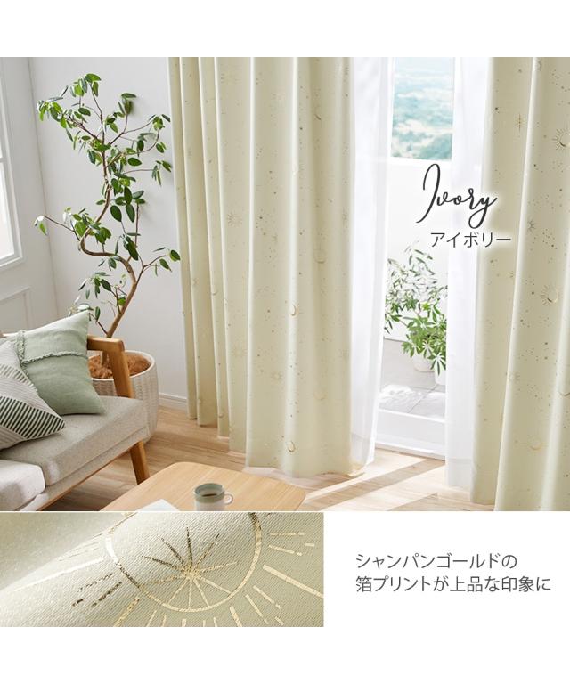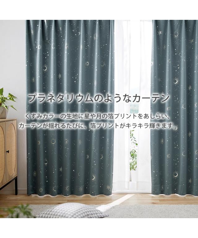 光沢のあるやわらかな生地に太陽や月、星などの天体を箔で表現したカーテンです。カーテンが揺れるたび箔プリントがキラキラ輝くので、お部屋にいながらプラネタリウムを眺めているような印象のお部屋を作ることができます。厚地カーテンの色によって箔の色も違うので、様々なテイストのお部屋にご使用いただけます。■機能 遮光・形態安定■おすすめポイント・特徴 洗濯機OK(ネット使用)■こんなお部屋におすすめ 朝日や西日がよくあたるお部屋、寝室■こんな方におすすめ 光をほどよく遮りたい方 美しいヒダを保ち、上質な空間を演出したい方