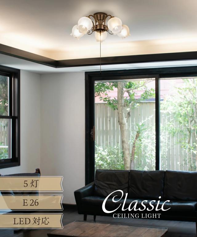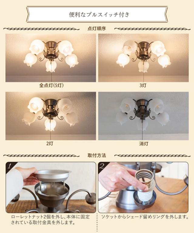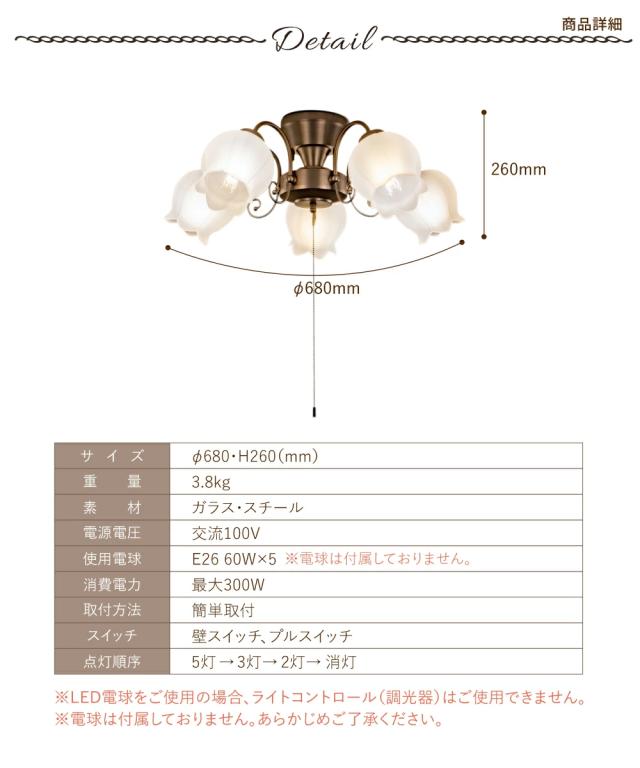 【Ampoule】 シーリングライト 照明 おしゃれ 5灯 シャンデリア ガラス リビング ダイニング 花 フラワー レトロ クラシカル エレガント フロスト プルスイッチ 点灯切替 照明器具 天井照明 間接照明 インテリア ブロンズ ゴールド 金 ブラス Classsic Bouquet ブーケ 5C