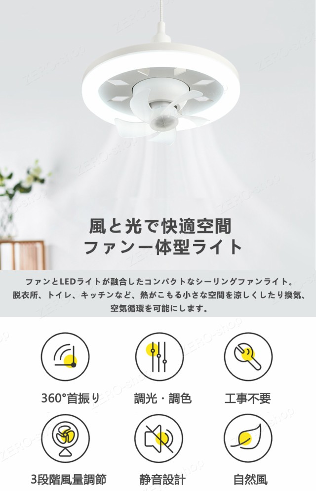 「最大10%ポイント還元」2025最新作 LEDライト サーキュレーター シーリングファン シーリングファンライト 扇風機 LED照明 小型 ファン付き E26 脱衣所 洗面所 トイレ キッチン 玄関 天井 調光 電球色 昼白色 ソケット 引っ掛け おしゃれ 送料無料