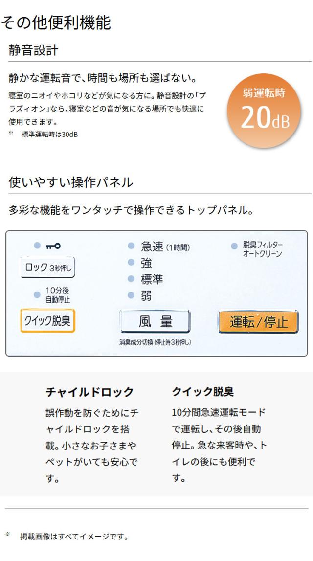 寝室のニオイやホコリなどが気になる方に。静音設計の「プラズィオン」なら、寝室などの音が気になる場所でも快適に使用できます。