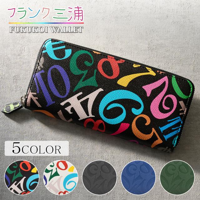 フランク三浦 長財布 ラウンド ファスナー エンボス 開運財布 金運 一粒万倍日 天赦日 幾何学模様 ロングウォレット メンズ レディース