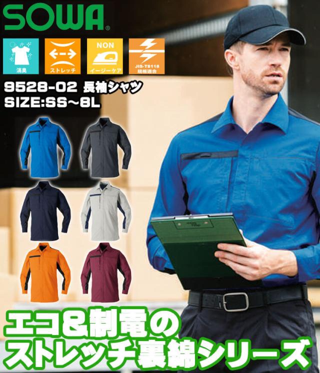 SOWA 桑和 長袖シャツ 9528-02 作業服 作業着 制電 SS〜LLサイズ