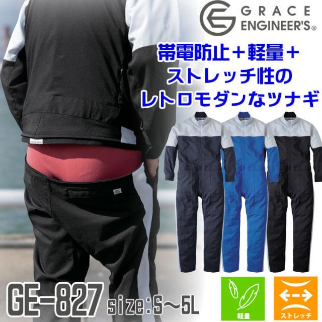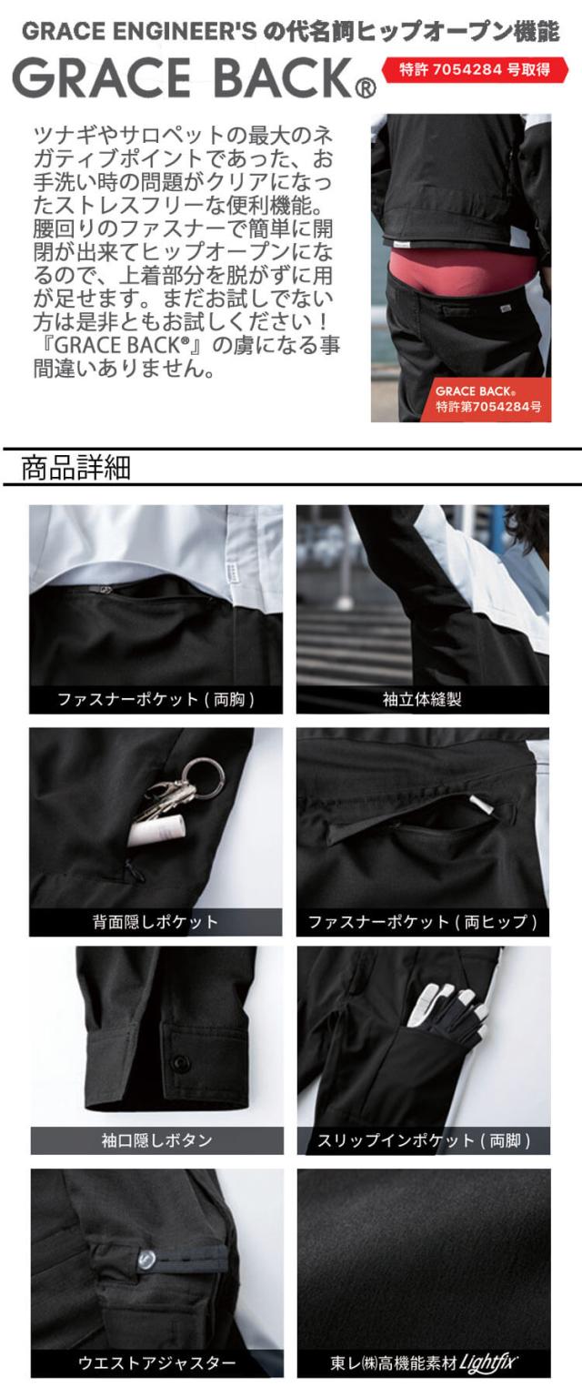 グレースエンジニアーズ エンジニアーズツナギ GE-827 つなぎ Lightfix GRACE BACK SKプロダクト S〜3Lサイズ