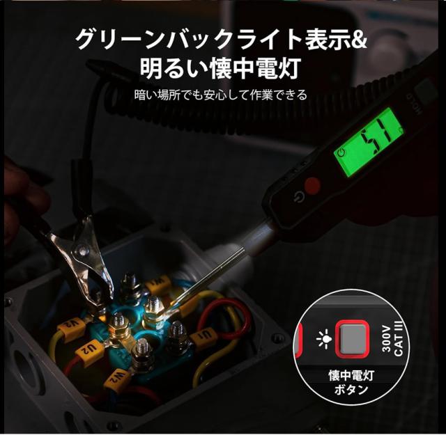 正確な電圧を読み取るために、視認性が優れるクリアな緑色のバックライトと明るいLEDデジタルディスプレイを搭載しています。