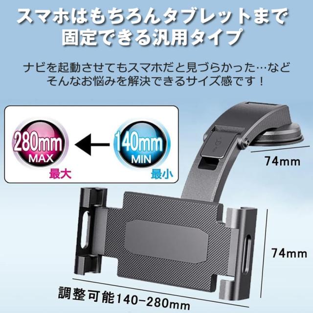 スマホ&タブレット兼用車載ホルダーは、車のダッシュボードやフロントガラスに