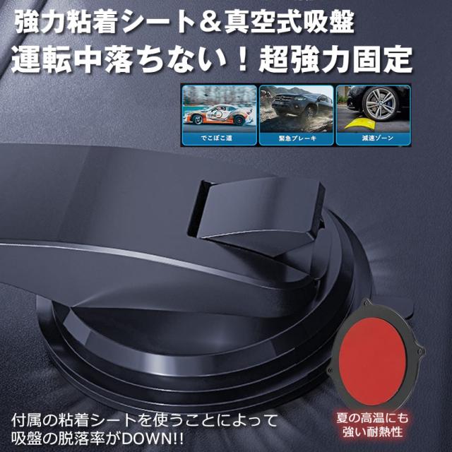 安定性抜群の超強力粘着ゲル&真空吸盤でダッシュボードまたはフロントガラスに