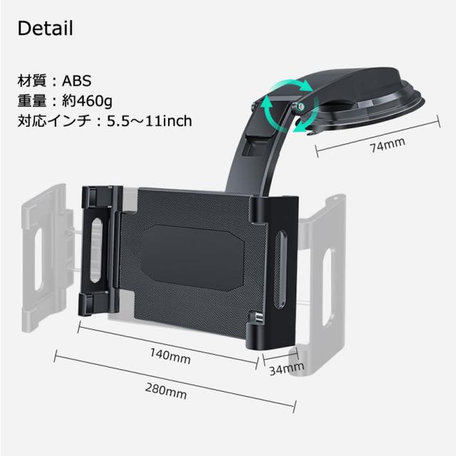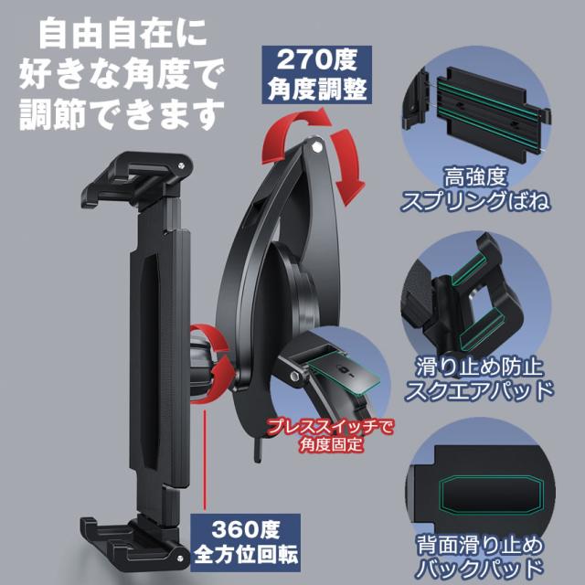 スマホ タブレット ホルダー 車 スマホスタンド タブレットスタンド 車載 タブレットホルダー iPad スマホホルダー スマートフォン アーム 10インチ 8インチ 固定 充電 滑り止め 車載ホルダー マウント 車載スタンド アームスタンド 360度回転 縦 横