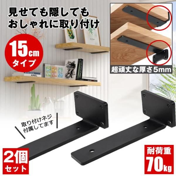 棚受け 棚受け金具 アイアン ブラケット 金具 15cm 4個セット 棚 ラック ウォール シェルフ スタンド ブラック 本棚 隠し棚受け アイアンブラケット アングル おしゃれ アンティーク 重量用 棚板 見えない 柱 壁 壁掛け 壁面収納 CD ファイル 本 収納 整理 DIY