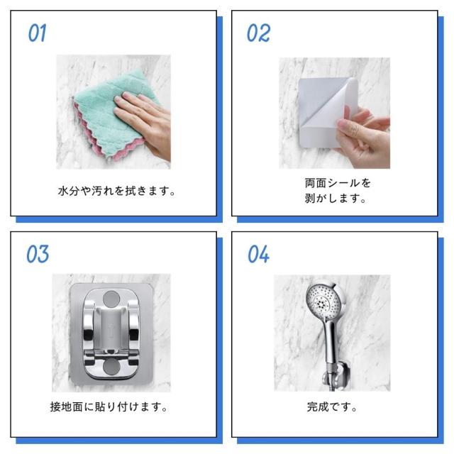 シャワーフック シャワーヘッドホルダー シャワーホルダー シャワー フック 両面テープ ラック シャワーヘッド ホルダー 交換用 穴あけ不要 取り付け 交換 風呂 シャワールーム おしゃれ 壁 バス ウォール 浴室 浴槽 キッチン トイレ 洗面所 お風呂