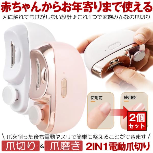 爪切り 電動 電動爪切り 赤ちゃん 介護 高齢者 便利 電動つめ削り 足の爪 2in1 爪磨き つめきり 角質ケア 爪やすり LEDライト付き 巻き爪 厚い爪 爪ケア USB充電式 ワイヤレス 2段階スピード 爪研ぎ 足爪用 赤ちゃん 介護用 足用 子供 プレゼント 静音