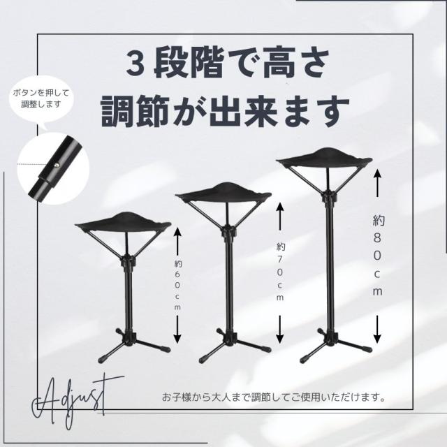 日本人の身長に特化して対応しており、立ったまま座れる高さでちょっと休憩を取りたい時や長時間立ちっぱなし仕事をしている人たちに最適な折りたたみ式ハイチェア。