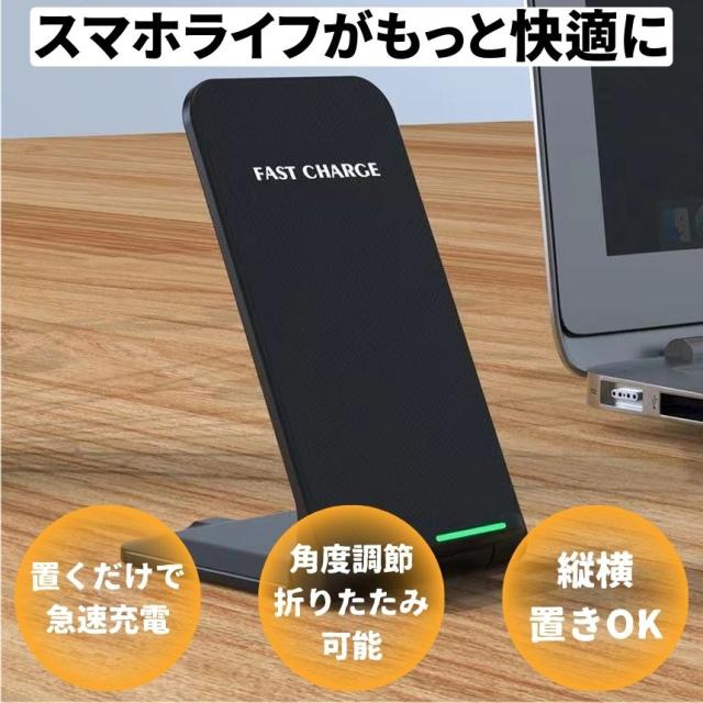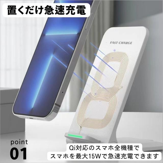 ワイヤレス充電器 置くだけ充電 スマホ ワイヤレス iphone 充電器 充電ケーブル 急速 Type-C USB 充電スタンド タイプC 急速充電 Qi おしゃれ かわいい 車載 airpods Android aquos 折りたたみ 収納 アンドロイド対応 iphone11 iphone12 置くだけ充電器