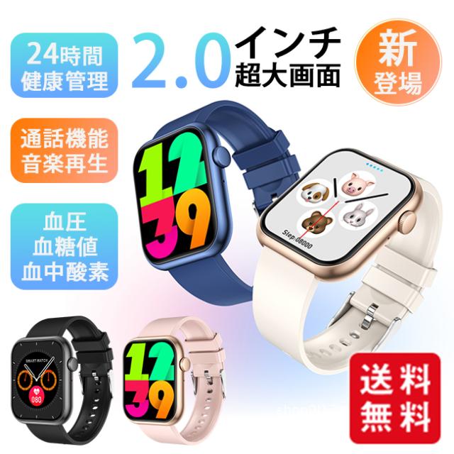 スマートウォッチ 腕時計 レディース メンズ 技適認証 健康管理 血糖値 体温 血圧測定 血中酸素 通話機能 音楽再生 日本語対応 2.0インチ大画面 最新型 防水 心拍計 万歩計 睡眠 モード 多機能 着信通知 Line Instagram Twitter Facebook インスタ ツイッター フェイスブック ライン通知 天気予報 アラーム カメラ操作 スマホ探し スポーツモード 運動距離 消費カロリー 座りがち通知 文字盤 iphone android 男女兼用 バレンタインデー 母の日 父の日 プレゼント 黒 ネイビー ベージュ ピンク シンプル おしゃれ オシャレ 可愛い かわいい 丈夫 軽い 大人 20代 30代 40代 50代 60代 新作