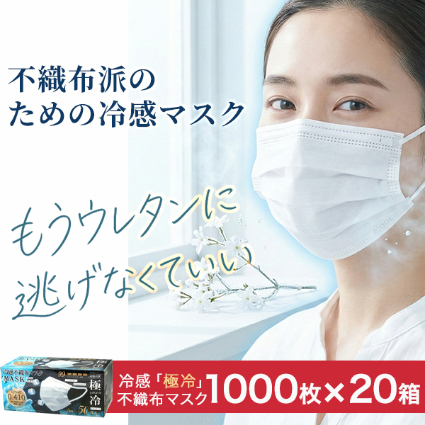 マスク 不織布 1000枚 Qmax0.410 接触冷感 ひんやり VFE PFE BFE 99% 使い捨て 夏用マスク 冷感不織布マスク 大人用 飛沫防止 花粉対策