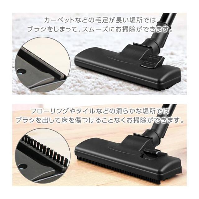 絨毯などの毛足が長い場所と、フローリングなどの硬い床でブラシヘッドの使い分けが可能です。