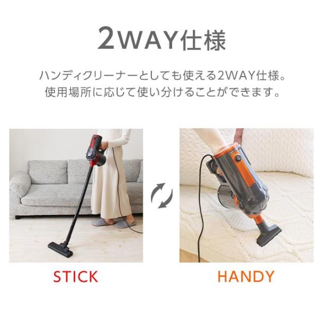 掃除機 強力吸引 スティック型 コード式 サイクロン サイクロン掃除機 スティック掃除機 2way 安い 一人暮らし スタンド 収納 ハンディ クリーナー