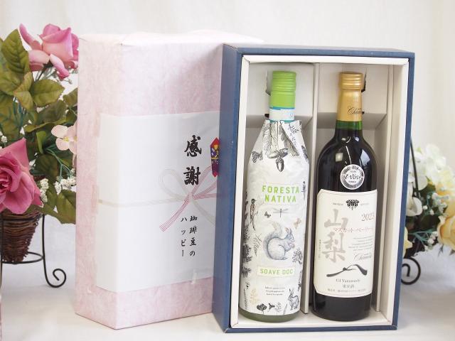 感謝の贈り物ボックス イタリアソアーヴェ白ワインと国産ワインセット(山梨 マスカットベーリーA 赤ワイン 重口(山梨県)750mlフォレスタ ナティヴァ ソアーヴェ (イタリア) 750ml