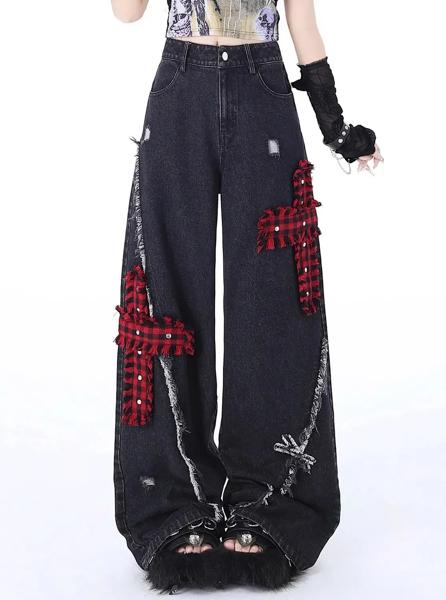 原宿-男性と女性のためのマイクロフレアジーンズ,カジュアルな破れたジーンズ,y2k,古い,スリム,ヒップホップ,ストリート,夏,新しい,2024