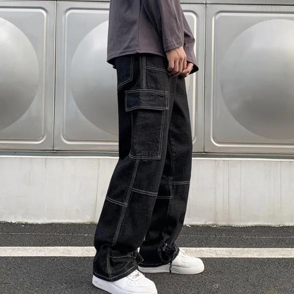 メンズストレートバギーデニムパンツ,カジュアルカーゴジーンズ,ワイドレッグジーンズ,ヒップホップストリートウェア,スケートボードパンツ,ニュートラル