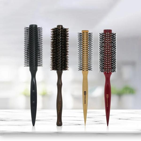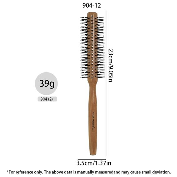 男性と女性のための丸いナイロンヘアブラシ,木製ハンドル付きのプロの帯電防止ヘアスタイリングツール