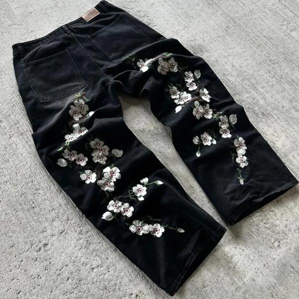 原宿-男性と女性のための桜柄のジーンズ,y2kバギーパンツ,ヒップホップストリートウェア,ゴシック,カジュアル,ワイドレッグ