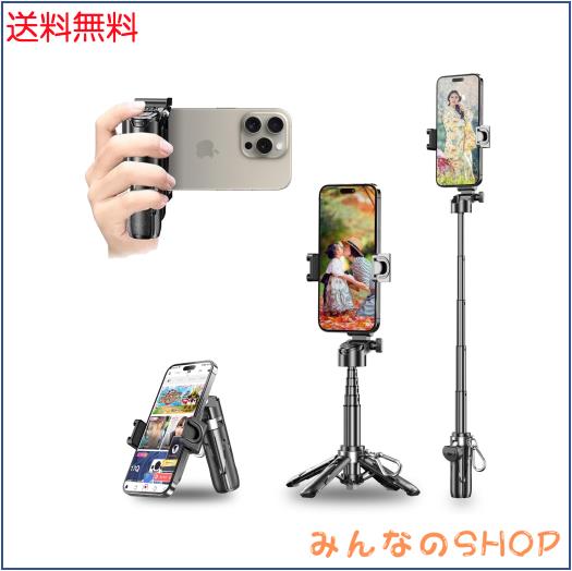 自撮り棒 スマホ 三脚 iphone カメラグリップ【Alアルミ合金・安定感】セルカ棒 Android兼用 スマホ撮影 スタンド 四脚付きスマホ 三脚