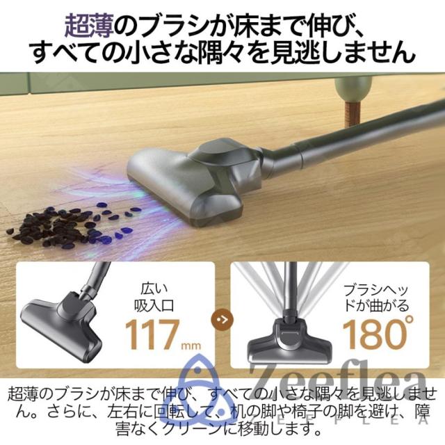 この掃除機には、豊富なアタッチメントが付属しており、床用ノズル、隙間ノズル、ブラシ付きノズル、延長パイプ、ソファ用ノズルなど、様々な清掃シーンに対応します。90°から180°まで調整可能な清掃角度により、あらゆる場所の清掃が簡単です。また、スティッククリーナーとしてもハンディクリーナーとしても使用可能な4WAY仕様で、使用場所に応じて最適な使い方が選べます。家庭やオフィス、車内など、どんな場所でも快適に使えるデザインで、清掃作業を楽に行えるのが特徴です。これらの多機能アタッチメントを使って、隅々まできれいにしましょう。