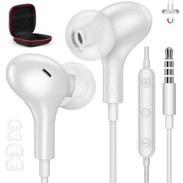 マグネットデザインのイヤフォン、収納ケースも付き:二つのイヤホンの背面にマグネットが内蔵されており、イヤホンを首にかけて簡単に装着でき、絡まりを防ぎます。 重さはわずか3g、圧迫感が少なく、軽い装着感で長時間の使用でも快適にリスニングが楽しめ、装着感拔群。仕事、勉強、旅行、睡眠、ランニング、ワークアウト、その他のアウトドア活動に最適。また、2種類のイヤーチップが付属しているので、お好みによって、ご自由に付け替えることができます。 収納ケースも付属しており、ホコリから守り、ヘッドホンの収納性を高めます。 シンプルかつおしゃれな見た目で、恋人、親友、自分にプレゼントに最適!
