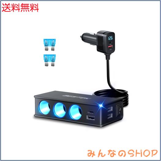 ◆商品名:BESTEK シガーソケット 3連 USB 車載充電器 QC3.0・PD30W 急速充電対応 電圧・電流表示機能搭載 12V/24V車用 A-BTTR49-BK