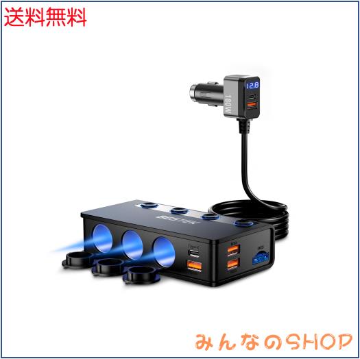 BESTEK シガーソケット 180W 3連 車 USB 増設 カーチャージャ 車載充電器 シガーライターソケット 3ポート PD36W/65W・QC3.0 18W*4充電ポ