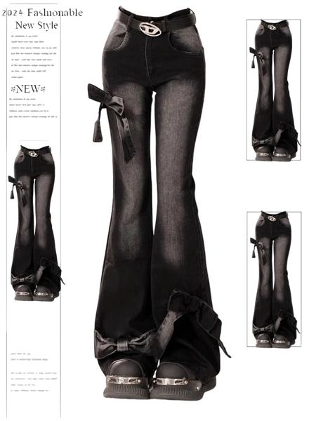 レディースブラックゴシックフレアジーンズ,ハラジュクフレアジーンズ,kエステティックy2kデニムパンツ,ハイウエスト,カウボーイパンツ,ヴィンテージファッションウェア,2000s