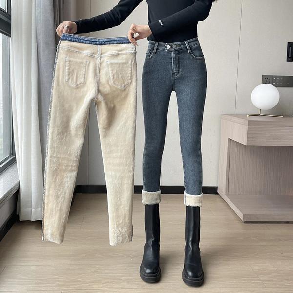 Zoenova-女性の厚手のベルベットジーンズ、ハイウエスト、スキニー、シンプル、フリース、ウォーム、スリム、ストレッチ、カジュアル、デニム、ペンシルパンツ、冬、2022