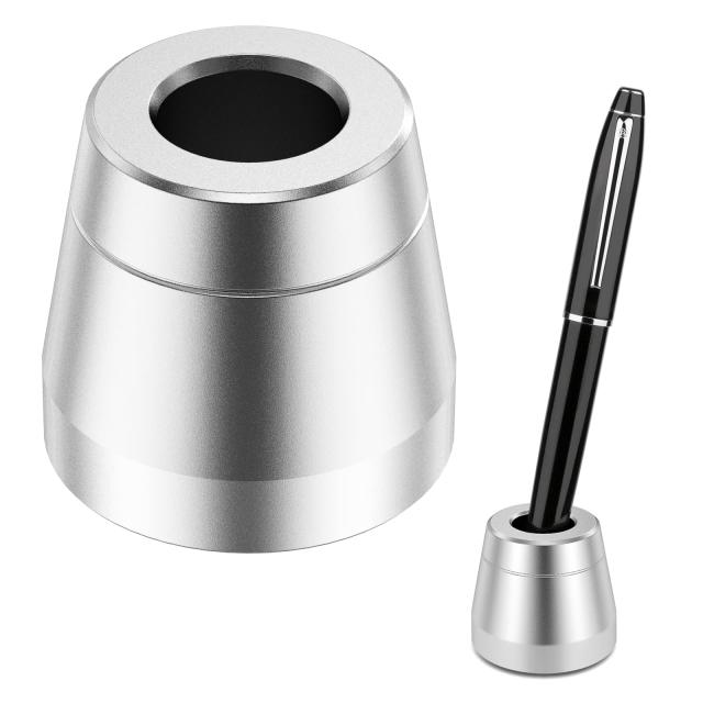 AKEIE ペン立て 1本 おしゃれ ペンスタンド 筆差し 滑り止め付き 万年筆 鉛筆 ボールペンに対応 アルミニウム合金 (1pcs, 銀)