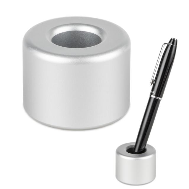 AKEIE ペン立て 1本 おしゃれ ペンスタンド 筆差し 滑り止め付き 万年筆 鉛筆 ボールペンに対応 アルミニウム合金 円柱 シルバー