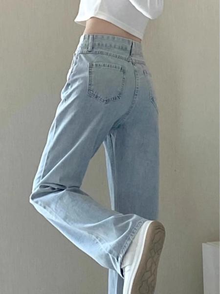 ライトウォッシュストレートレッグルーズフィットジーンズ女性のプラスサイズハイウエスト痩身ワイドレッグ洋ナシ型ボディパンツ秋シーズン