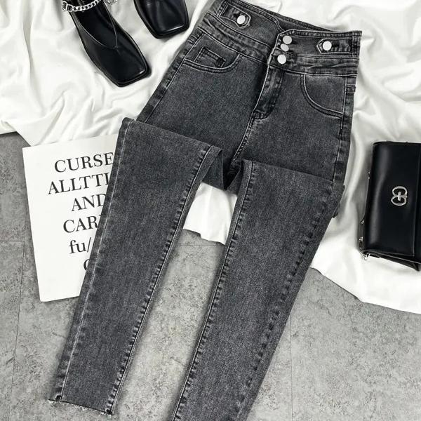 女性用ハイウエストスリミングジーンズ,ストレッチ,キルティング,スリムフィット,引き締め,効果的,伸縮性,ウエストラインコントロール,グレー