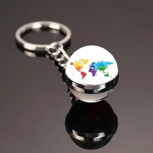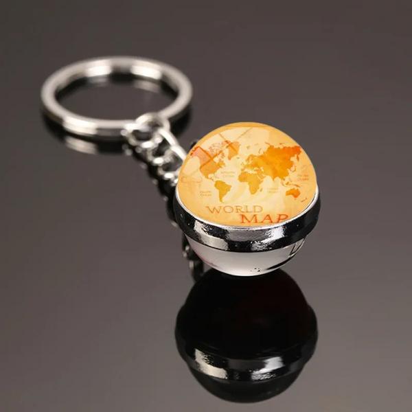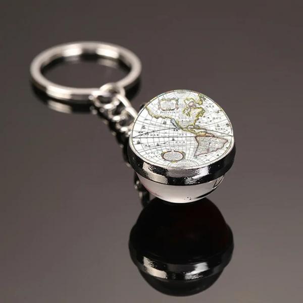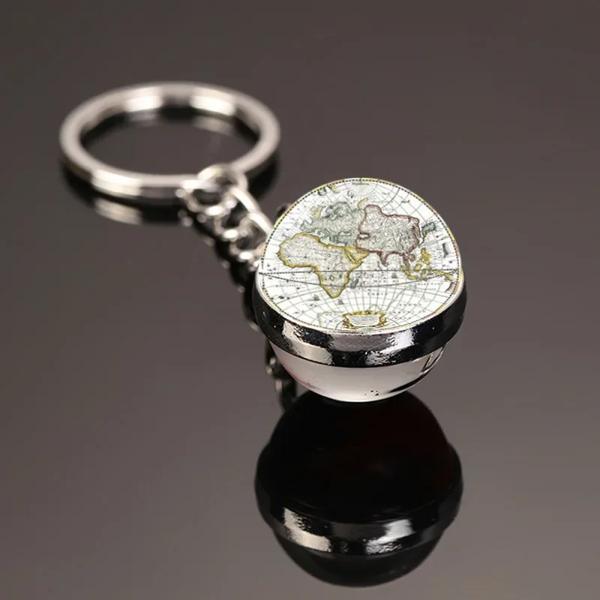 レトロな世界地図,両面ガラスボール,キーホルダーアクセサリー,ペンダント,DIYギフト