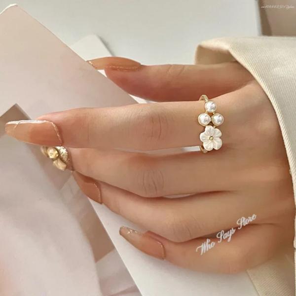 女性のための淡水パールフラワーリング,女の子のためのシンプルなオープニングリング,絶妙なジュエリー,韓国のファッション