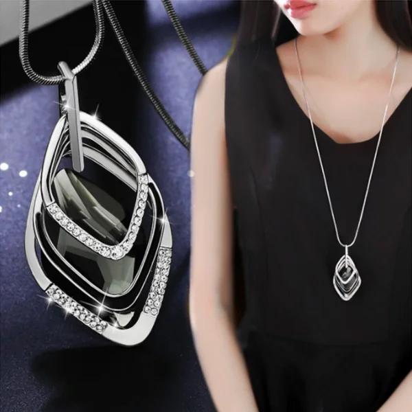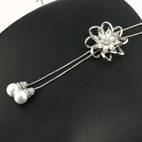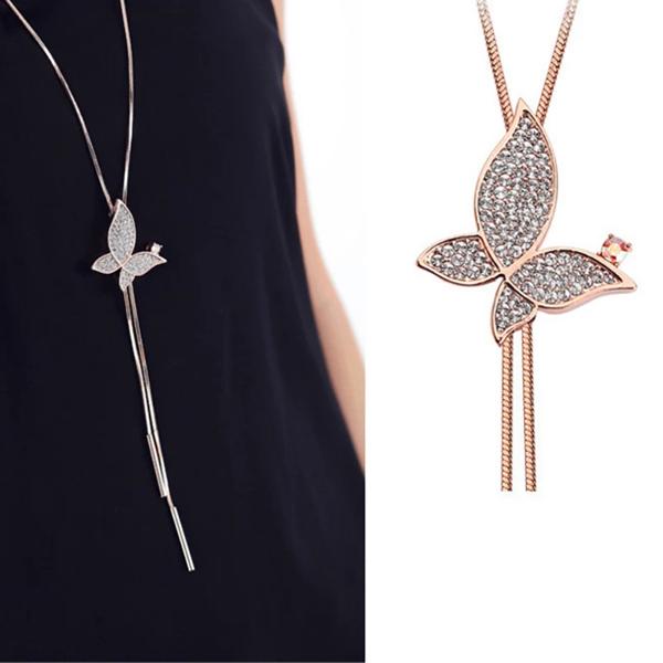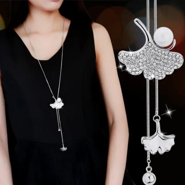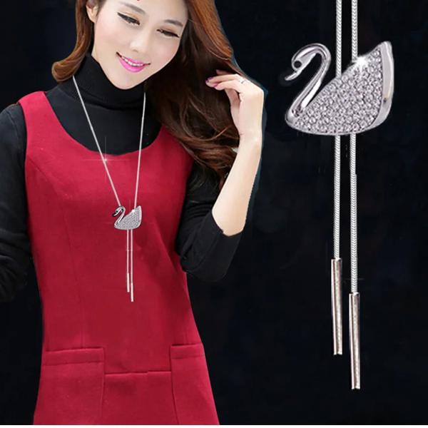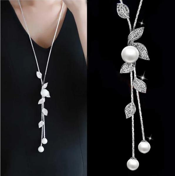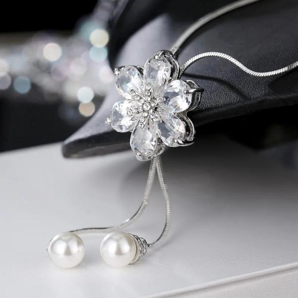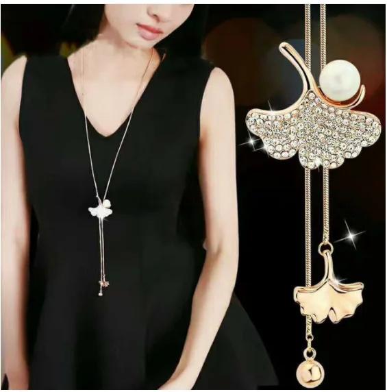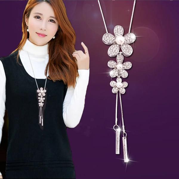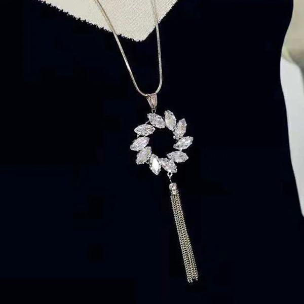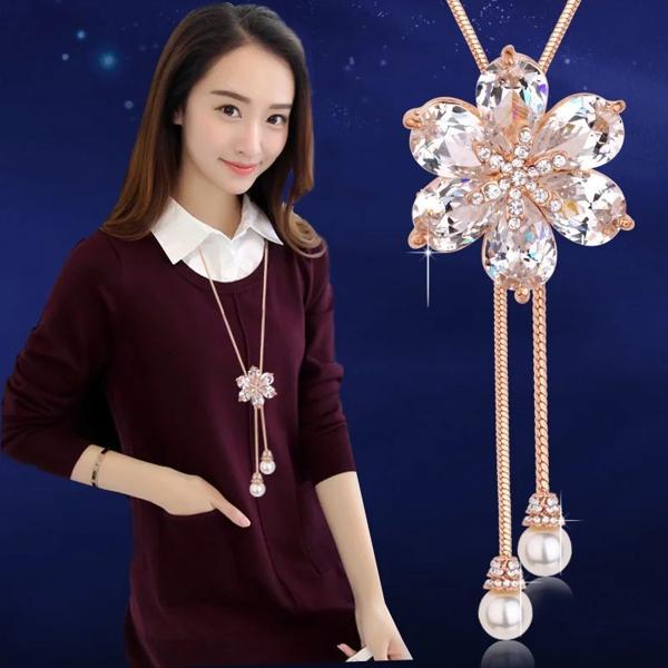 女性用ペンダント付きジルコニアセーター,チャーム付きクリスタルネックレス,長い韓国のタッセル,バラの花,ギフトジュエリー